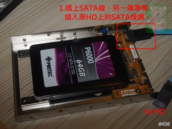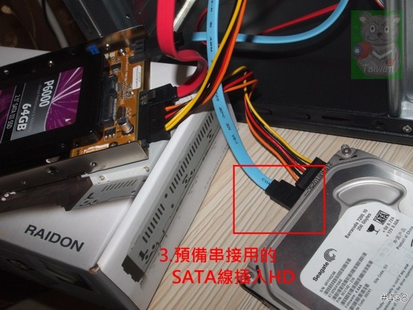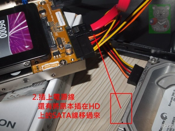 2.將電源線與原HD上的SATA線(就是接到主機板的那一條SATA線)移過來插到CacheHybrid上。