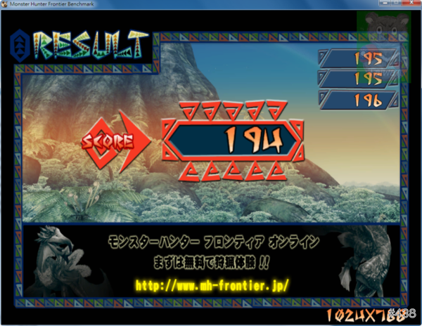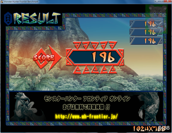 也小小的利用Monster Hunter Frontier Benchmark 測試了一下、這個有發現有趣的現象…讓您自己觀察發覺與回文跟馬克一起研究好了!