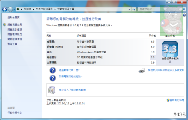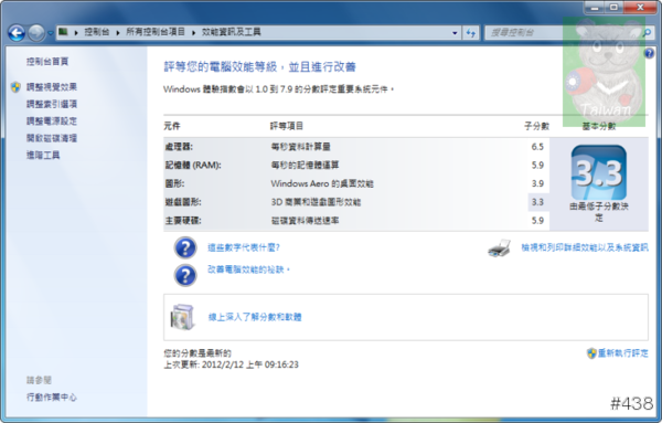 Win7 體驗指數 WPI (Windows 7 Performance Informantion )