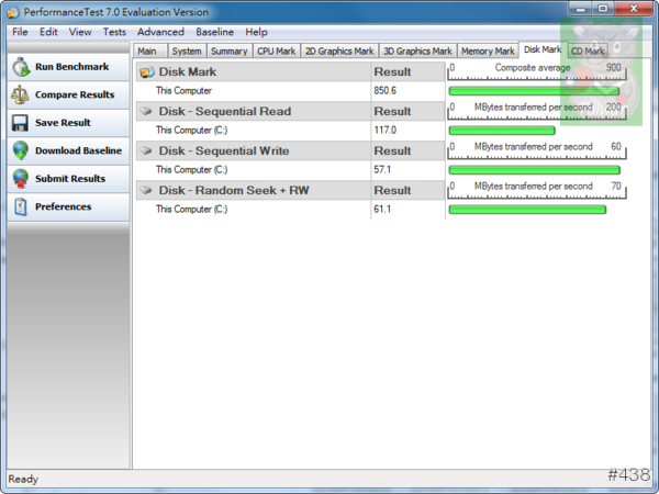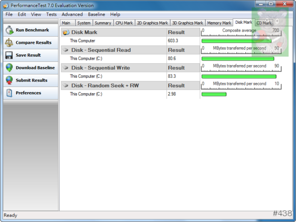 604.4 : 612.4 也是有顯著差異、尤其Disk Mark 603.3 : 850.6 很明顯,Random seek + RW 更是 2.98 : 61.1 。
