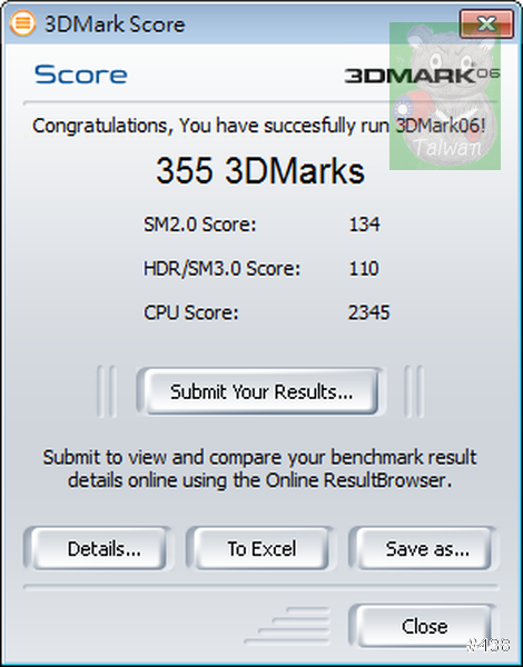 355同分、但有些微不同喔...,134 : 133 / 110 : 111 / 2345 : 2386 ,也對啦!同一個平台嘛、改善顯示的部份要靠獨立顯卡才正確!