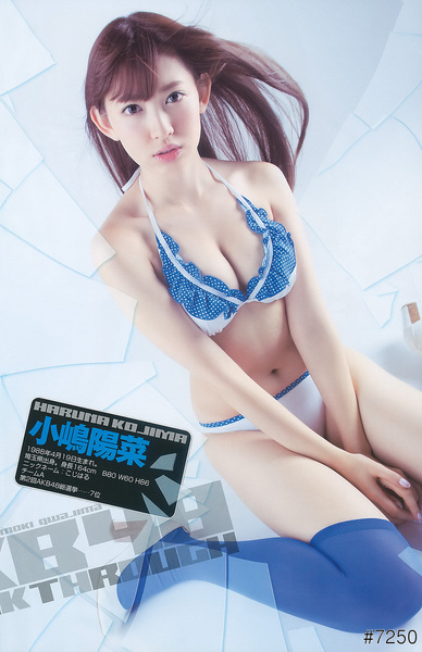身材姣好的小嶋(ㄉㄠˇ)陽菜,獲得不少大廠牌代言機會及拍攝知名時尚雜誌,她於今年AKB48第27張單曲選拔總選舉獲得第7名。