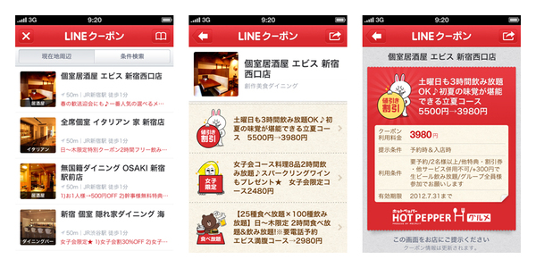 ▲LINE 折價卷服務,推出店家折價優惠訊息,可以跟朋友一起分享,預計八月份推出。