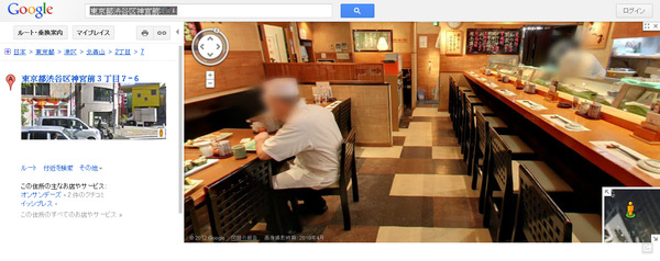 現在在http://goo.gl/maps/Y6t3的街景服務,可以看到壽司店內的裝潢。