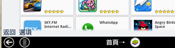 ▲ 下載後安裝,執行的第一個畫面會是這樣子。看得一頭霧水嗎?下方按鍵由左至右分別是對應 Android 系統的「返回」「選項」,中間的彩色按鈕是「首頁」鍵。