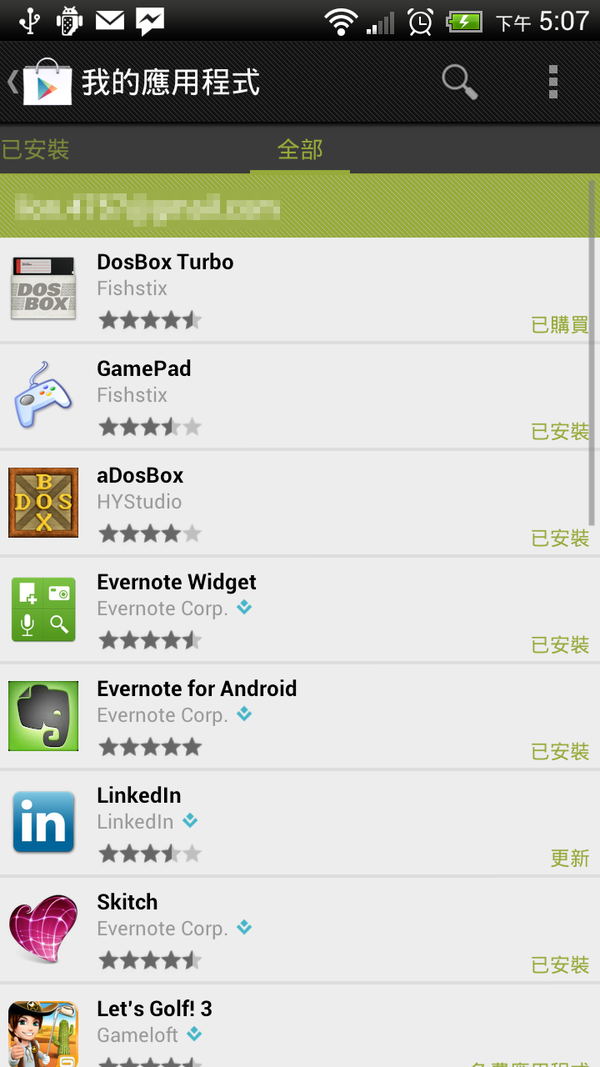 ▲ 在打開我的實體 Android 手機,選「我的應用程式」,剛剛在電腦上購買的程式就出現在這邊了!立刻點選安裝吧!使用這種方法就可以無痛避開限制,自由的購買 Android 軟體了!