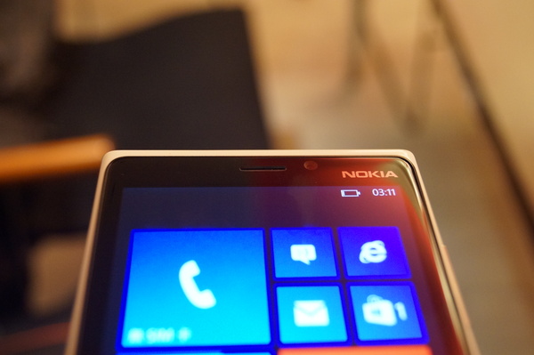 ▲ 這次 Lumia 920 捨 AMOLED 轉用 720P 解析度的 IPS 面板,我們都知道,AMOLED 最大的優勢就在其高對比,尤其是黑色,因為 AMOLED 的黑色即是完全無光的黑,無論如何都會勝過 IPS 的黑色。但 920 的黑色實在是我看過最「不黑」的黑色了(在 720P IPS 面板之中。)這張是黑暗中拍攝的,螢幕已經從黑色變成藍色了。