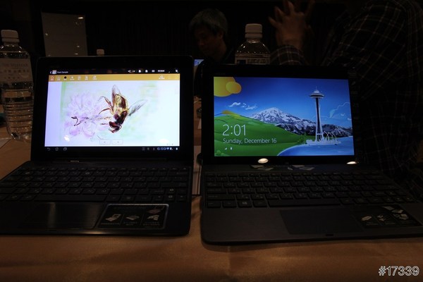 接下來是兩台針對需求不同的人但都很優的平板電腦,在您的右手邊是TF700,左手邊是RT TF600,基本上兩台的厚薄度只有差一點點。