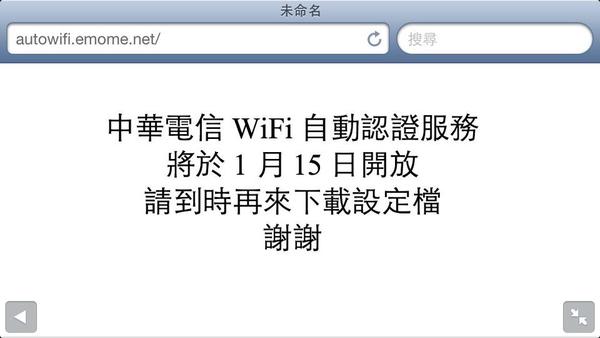 風聲走漏,中華電信 Wi-Fi 自動連接的設定檔下載網頁已暫時關閉,將於是1月15日再度開放。