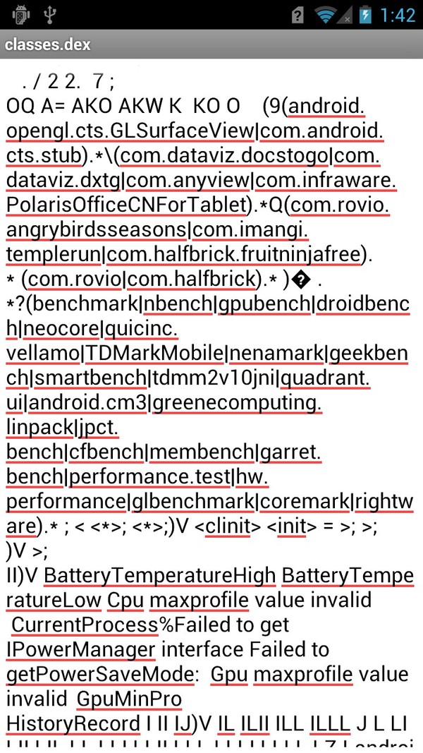 ▲ 而在華為手機中的系統程式層(\system\app)也發現了針對跑分軟體做偵測的文件檔案,雖然無法得知華為是如何偵測並改善自身跑分的,但可以從這一份檔案中發現各大著名跑分軟體,除了 ANTUTU 還有 Vellamo、Cfbench、nanamark 等等。