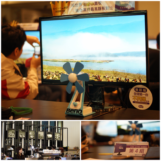 好不容易拍了照、打了卡進入會場,40 位體驗的來賓分成五組,每一組桌上都擺了最新的 GW2760HS 不閃屏顯示器,還有讓大家能實際感受到螢幕不閃爍的測試風扇。