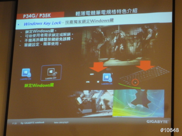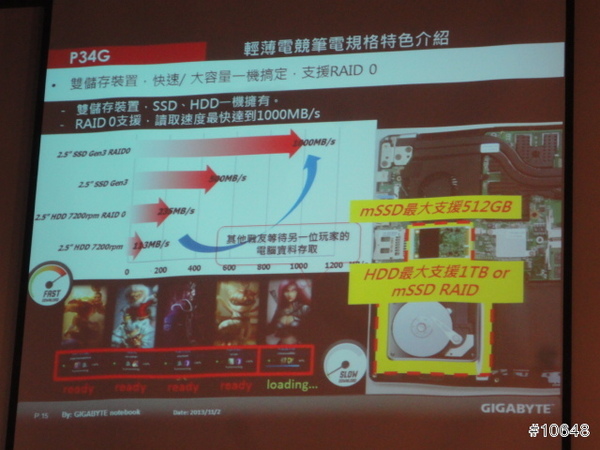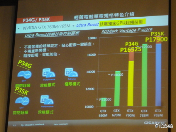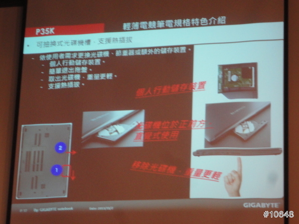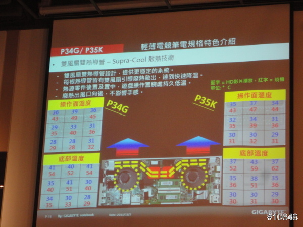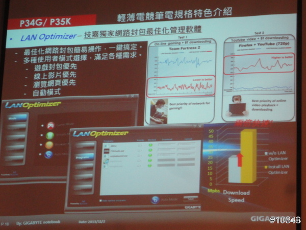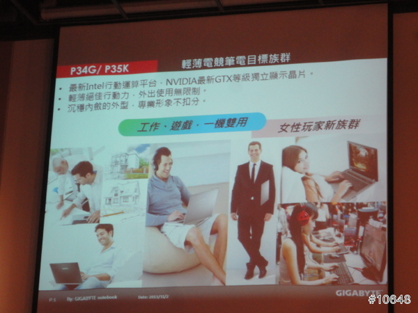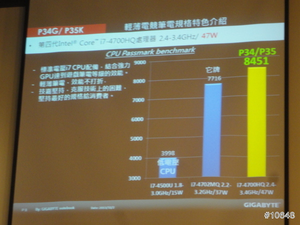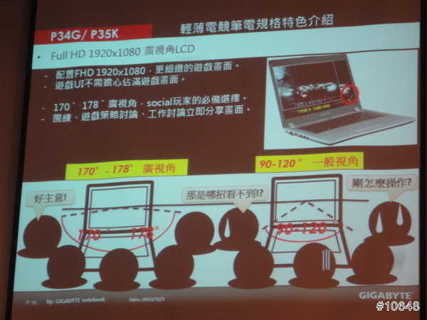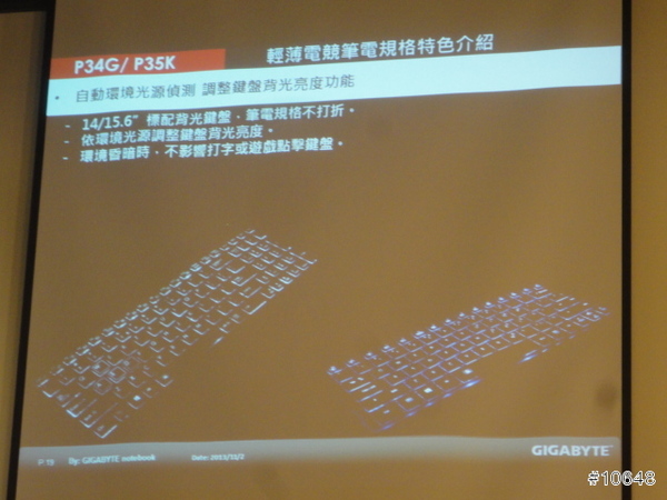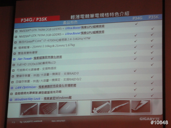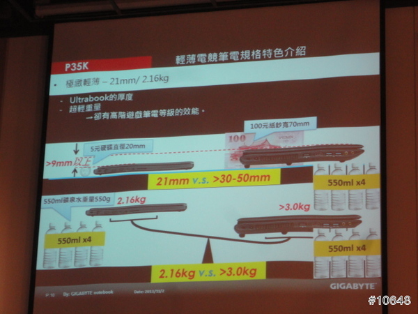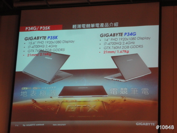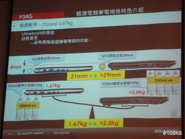 ▼ GIGABYTE產品經理黃士哲特別提到自家高效能電競筆電輕薄特性,現場並展示搭載i7四核心與GTX 760M的14吋機型P34G,重量只有1.67Kg,21mm