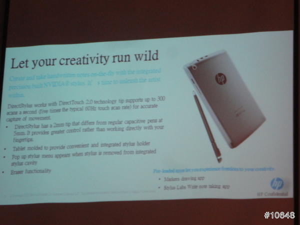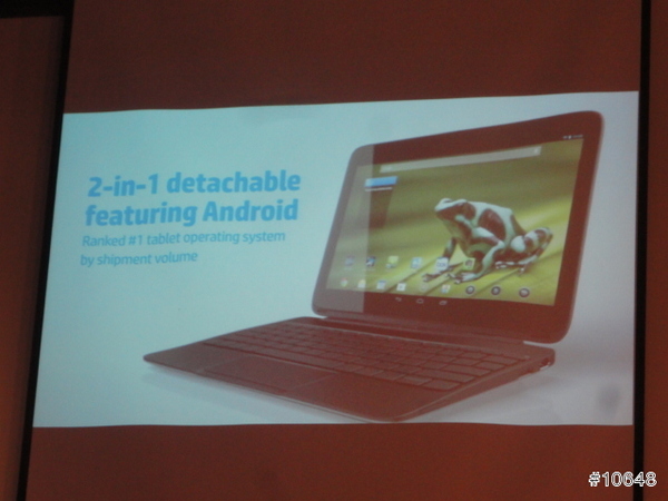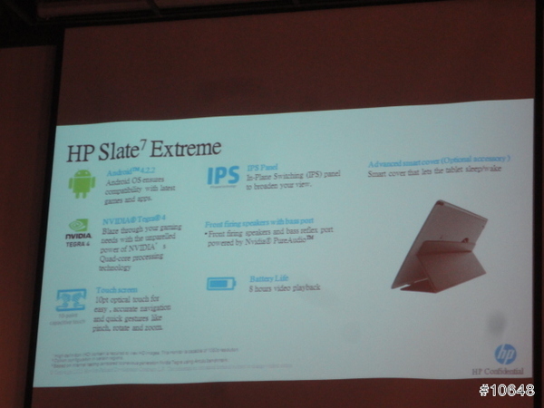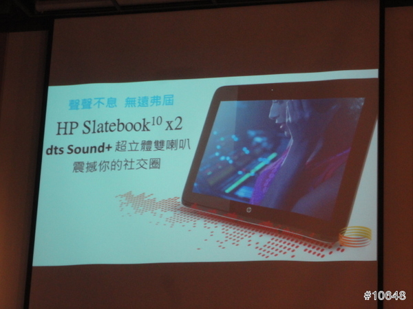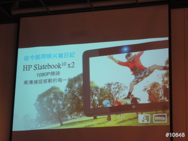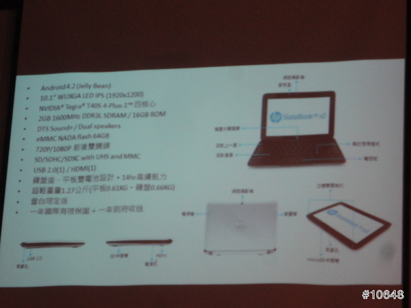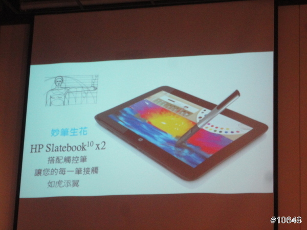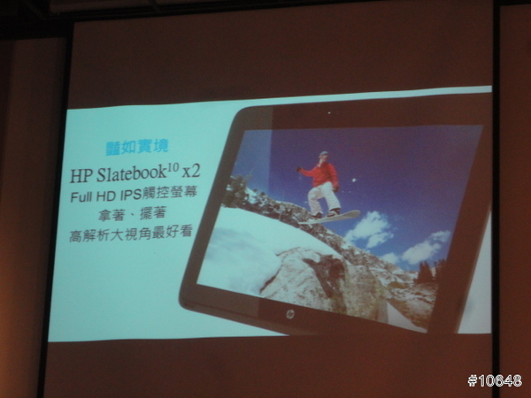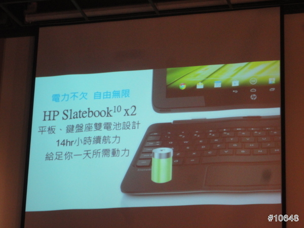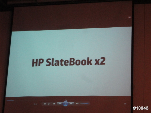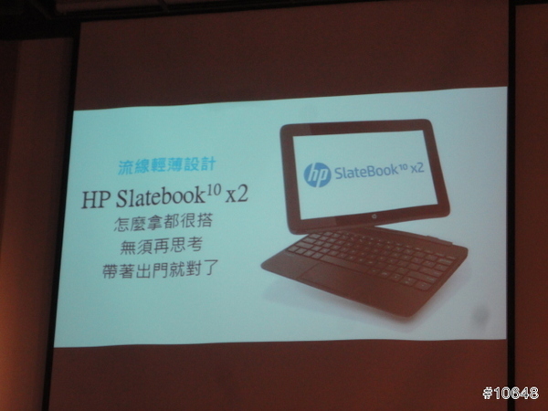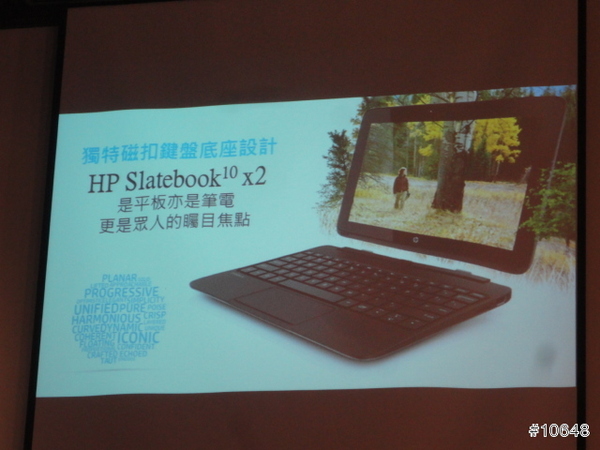 ▼ HP經理陳垠良特別介紹HP SlateBook x2平板電腦,採用FullHD IPS觸控螢幕,需要打字時可跟鍵盤合體是特色,14小時續航力,給足你一天所需動力