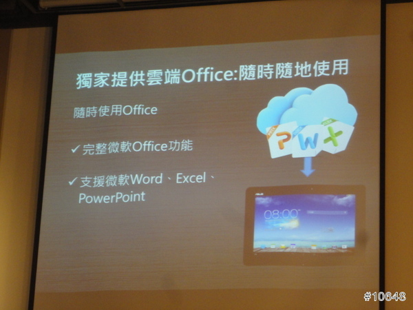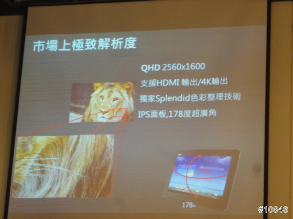 ▼ ASUS專案經理許晉福表示,自家平板除了可使用雲端Office功能以外,也搭載超高解析QHD螢幕,並能輸出4K解析度的影像