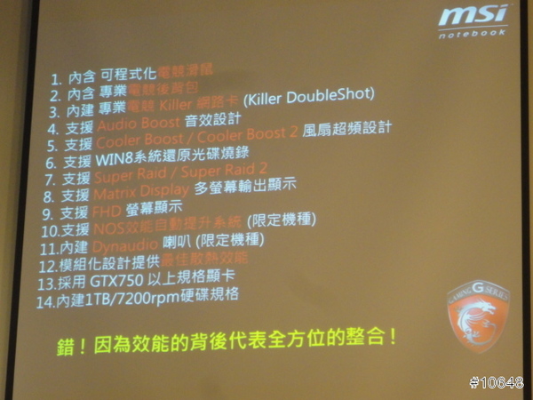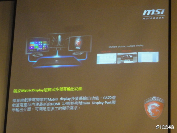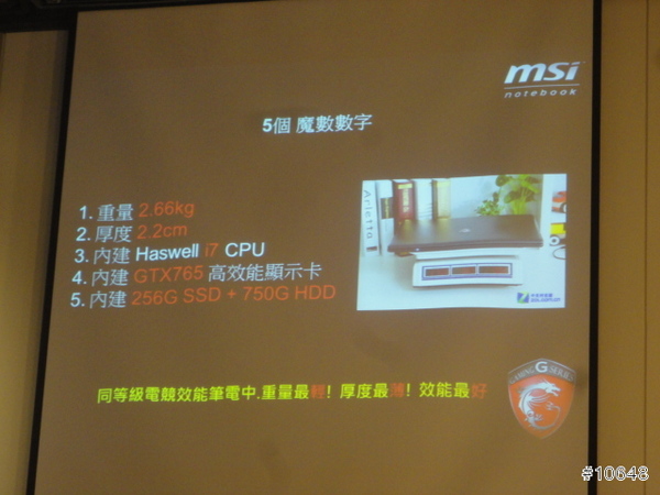 ▼ MSI業務經理李宜哲強調,除了硬體規格以外,必須還要兼顧其他設計,才配叫電競筆電。當日展出的GS70屬於17吋大型機種,特色是搭載高階的GTX 765M晶片與全彩背光鍵盤