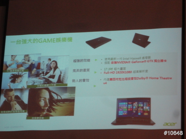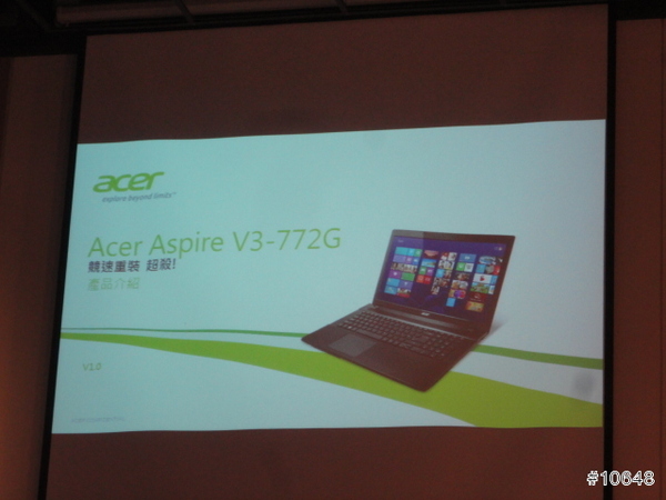 ▼ ACER技術副理劉仲虎介紹自家產品的技術優勢,現場也展示搭載GTX 760M與17吋FullHD大螢幕的V3-772G筆電