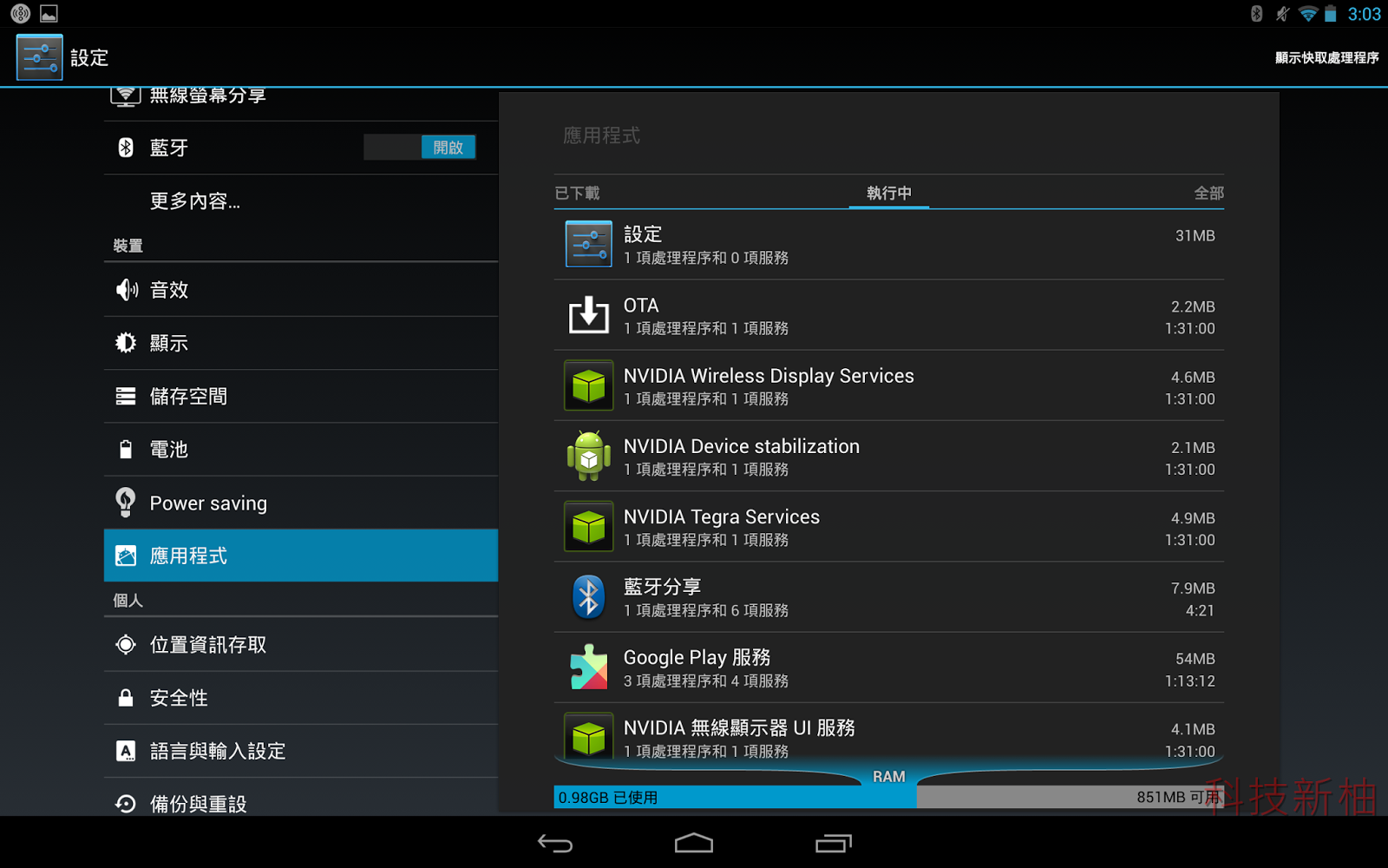 ▲ KALOS 開機後的記憶體使用率大約是 1 GB左右,剩餘 851 MB 可用。