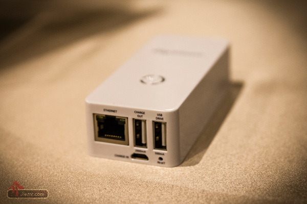 屁股的地方左邊插上網路線就變無線基地台,如果裡面的電池有電的話就不用另外供電,不然就用右下角的USB供電,至於右上角的USB可以拿來給手機或平板充電,分別是1A跟2A的供電孔,隨身碟跟外接硬碟可以直接插上使用 (最高可以支援到2TB)有些外接硬碟要插兩個USB孔才能正常使用,這款Smart Box A4 剛好有兩個,就不會發生外接硬碟有供電不足的問題了