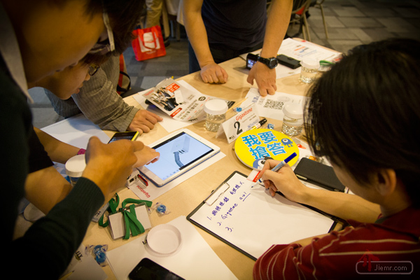 在活動中每桌都有一個 Smart Box A4 讓大家一邊體驗商品,一邊做創意發想(現場有創意比賽換獎品),很快的大家就將產品玩得很熟了,因為大家都想要贏得 Smart Box A4 所以大家都拼了