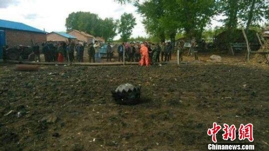 16日13時,黑龍江省依安縣雙陽鄉孟常村村民聽到了巨大的破空聲,然後有村民目擊看見一個大火球劃過天空,墜落在農戶家菜園內。隨後,中新社記者從村民處拍攝的照片上看到,該物體為圓形金屬物,外圍有鋸齒狀包圍物。