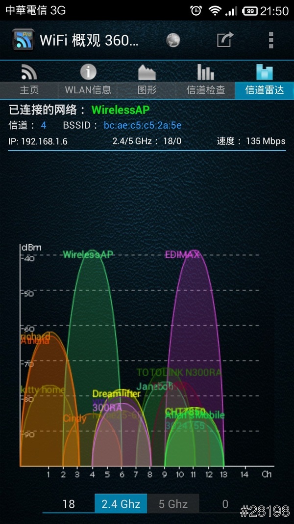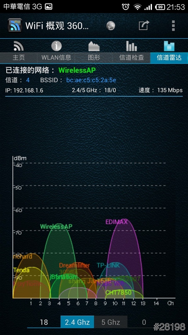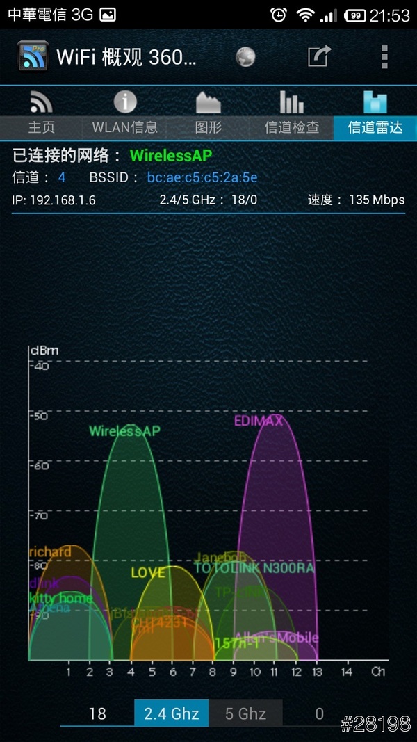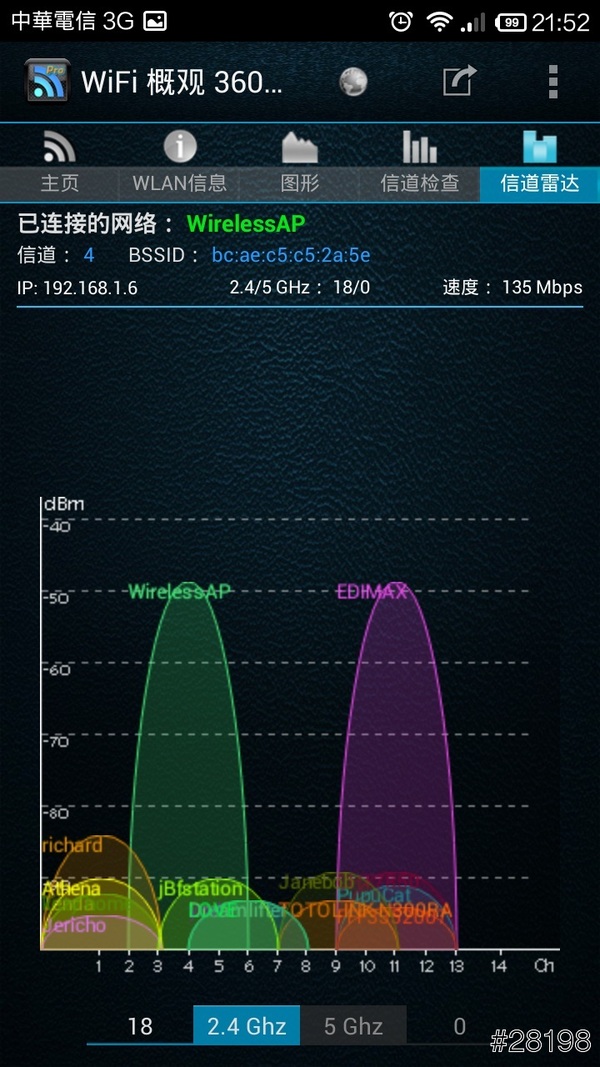 ASUS RT-N16 頻道為 4 SSID 為 WirelessAP , EDiMAX BR-6479Gn 頻道為 11 SSID 為 EDiMAX