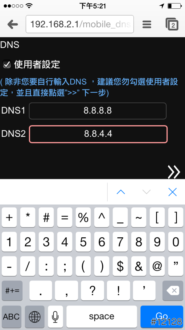 設定完成後 還可以設定 DNS 這邊就用使用 Google 的 DNS 來做測試