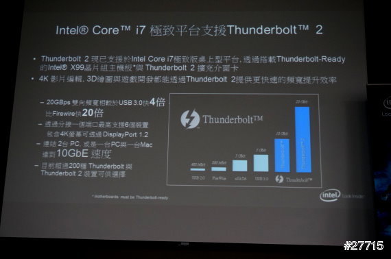 Core i7平台也支援Thunderbolt 2,讓4K影片編輯或3D繪圖時都能透過Thunderbolt 2提供更快速的頻寬效率。