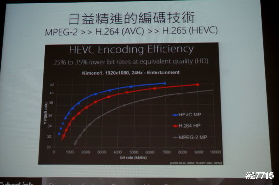 編碼技術的進化,MPEG-2 -> H.264(AVC) -> H.265(HEVC),因為編碼技術的進步,影片解析越來越好,而檔案的檔案也越來越小。