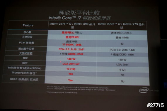 INTEL Core i7 X99晶片組和X79晶片組的比較表