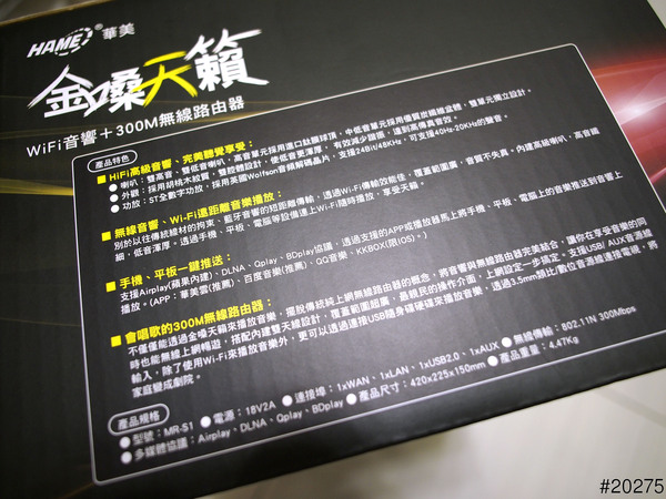 箱子側面標示著…金嗓天籟MR-S1的規格與特色