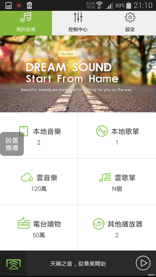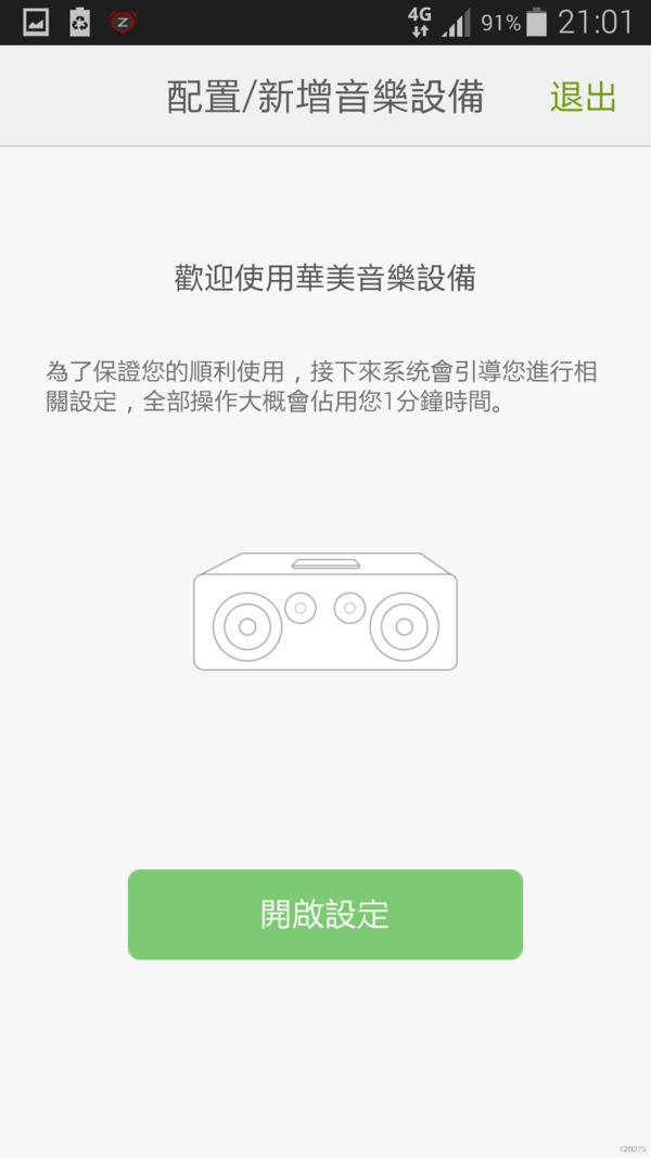 第一次執行軟體時,會進行配置音樂設備的動作,點擊…開始設定