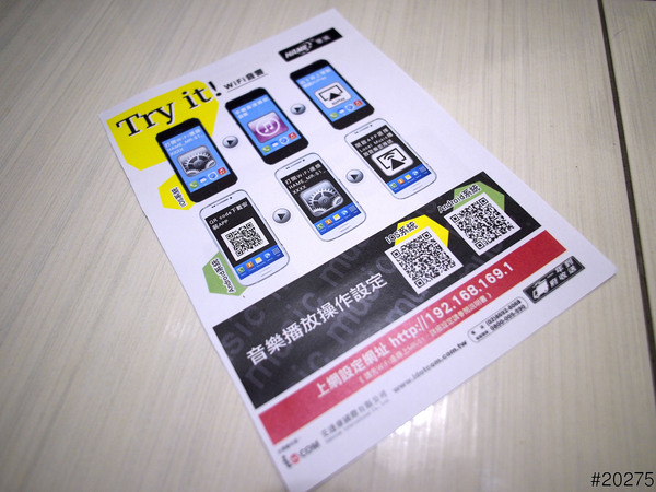 手機用QR code掃描喇叭主體的右下角QR code就會進入下載官方的播放軟體