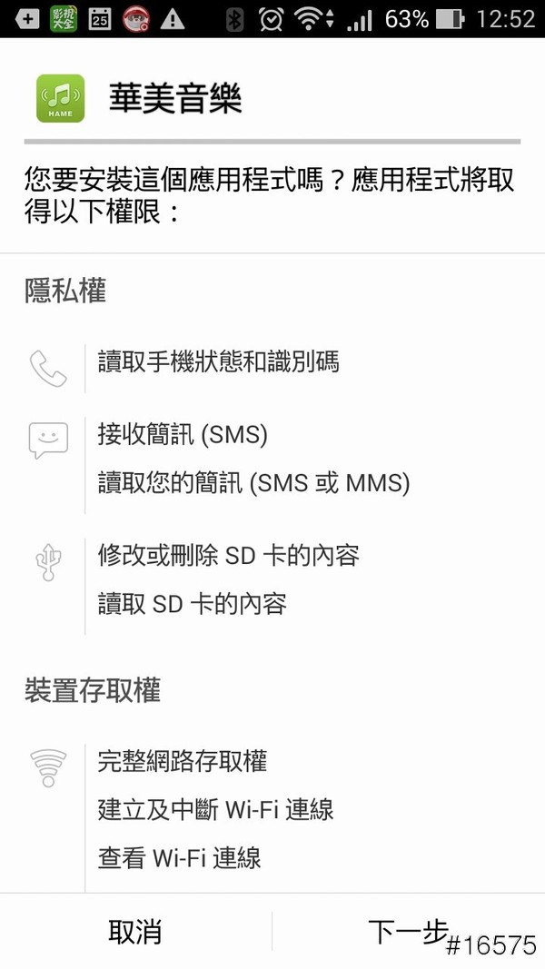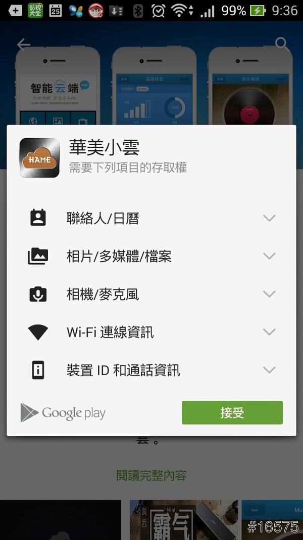 中間會列出這個APP需要的存取權,直接按下「接受」就會開始安裝。