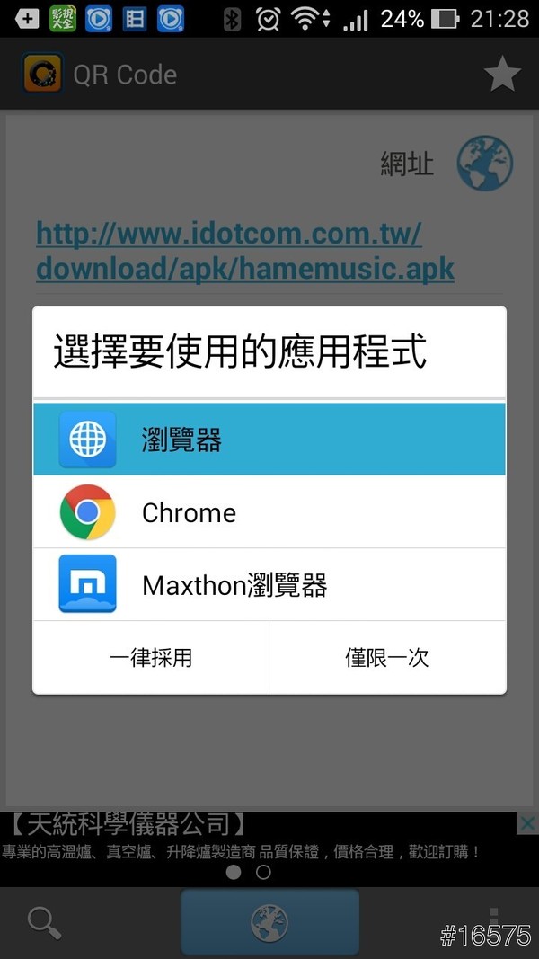 之後選擇任一個瀏覽器開啟都可以,圖例是選擇Chrome,然後點僅限一次即可開啟,當然只有裝一個瀏覽器就直接開啟即可。