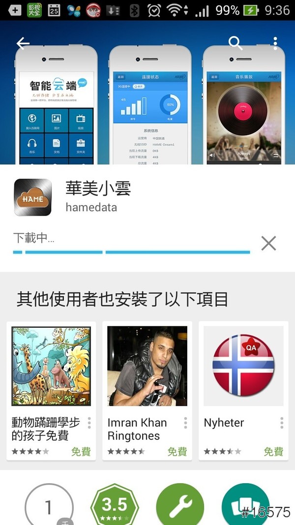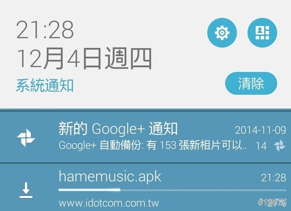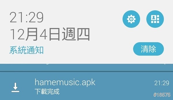 接下來由螢幕上方往下滑,就可以看到有「hamemusic.apk」正在下載,稍等一下。