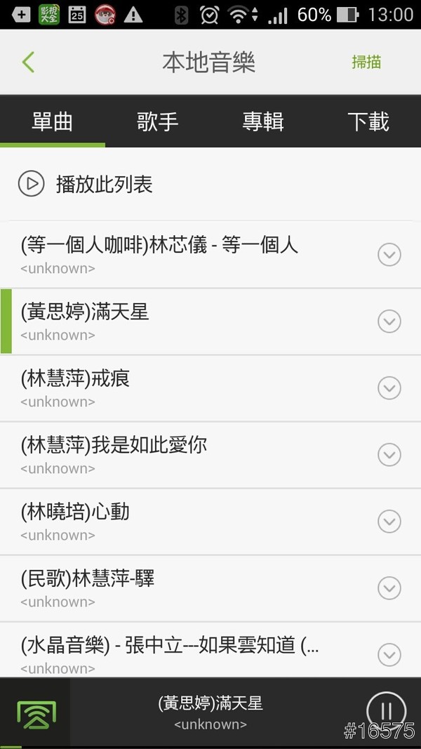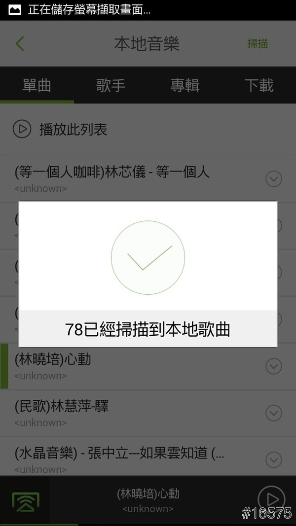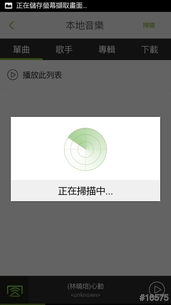 按下掃描後,就會開始掃描你手機裡的音樂,不用自己去找音樂放置的資料夾在哪裡。