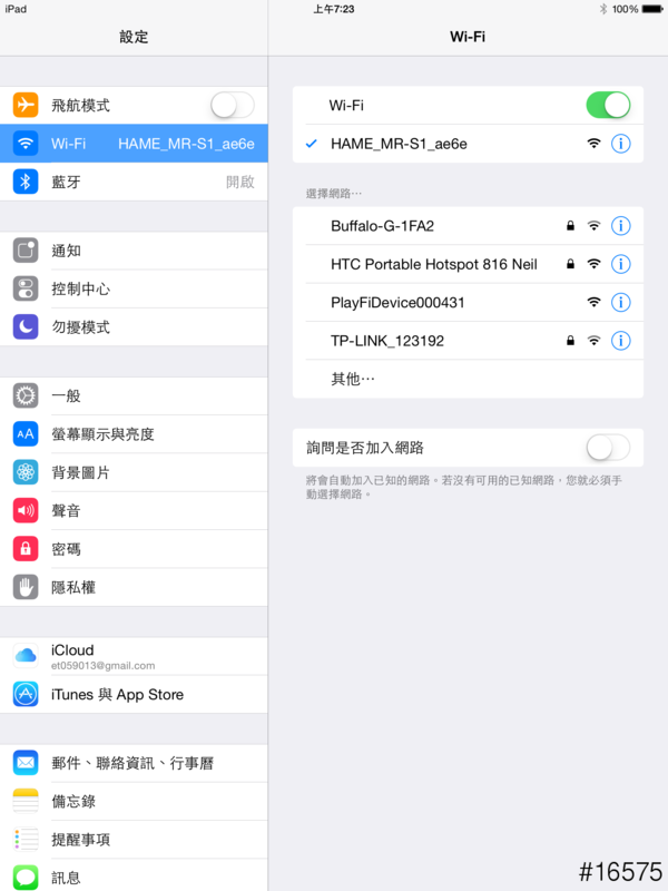 然後,在「Wi-Fi」中選擇「HAME_MR-S1_ae6e」連線。
