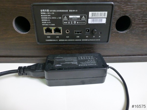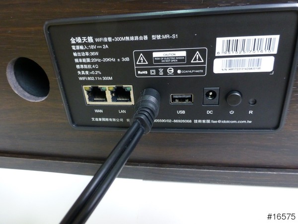 左邊還有網路的插孔,如果你要用有線網路的方式,可以使用,所以Hame MR-S1是有線、無線都能使用的。