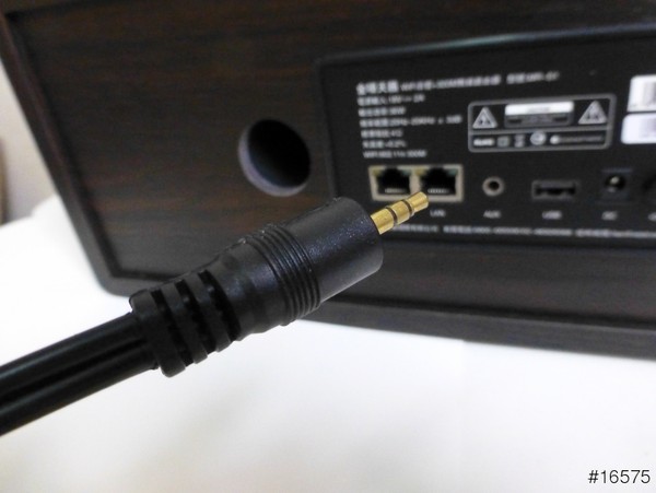 然後將3.5mm 標準規格的 AUX 類比輸入端子如照片般插入插孔(插入AUX孔內)。