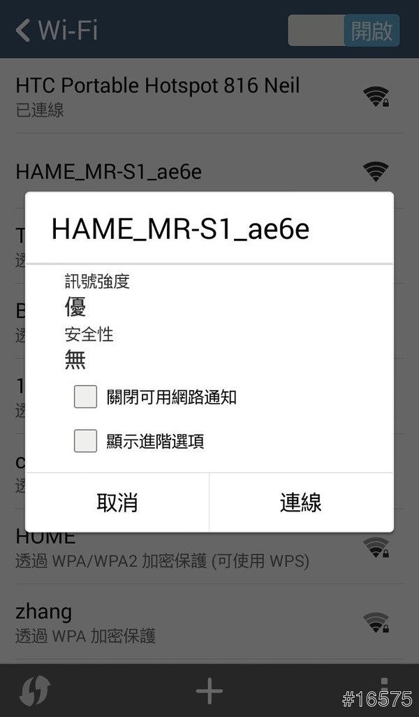 接著,將手機的Wi-Fi開啟,到手機的Wi-Fi中找到HAME_MR-S1_ae6e,點選它連線。