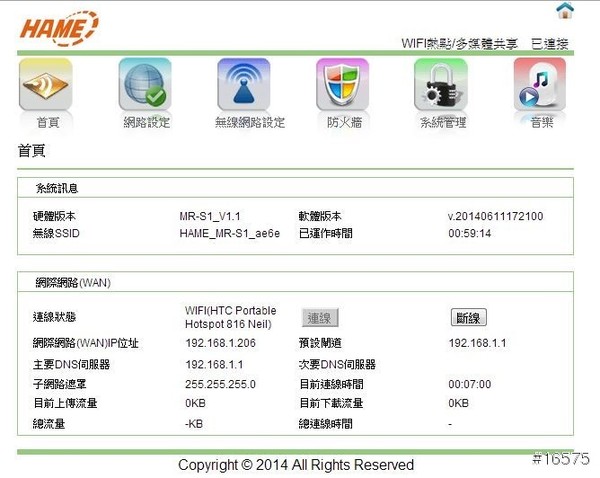 七、無線路由器與無線Wi-Fi音響二合一:很多人家裡都需要無線路由器,使家中的設備能同時上網,你連無線路由器的錢都可以省下來了。我在試用的期間,都是用連上Hame MR-S1上網的。