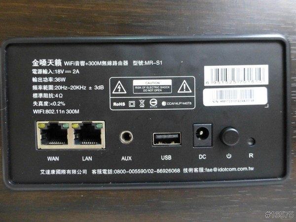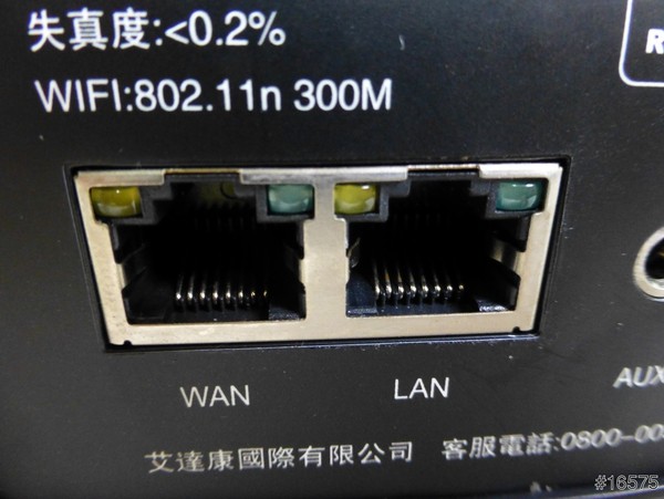 這就是後面的插孔,有WAN、LAN、AUX、USB、DC、電源開關、R。