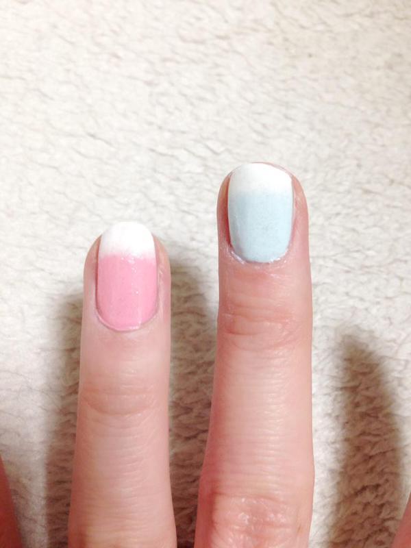 只要將自己喜歡的配色塗在海綿上,然後再把它蓋到指甲上,之後只要將指甲邊緣的指甲油清除掉,漸層風格的指甲彩繪就完成了喔!