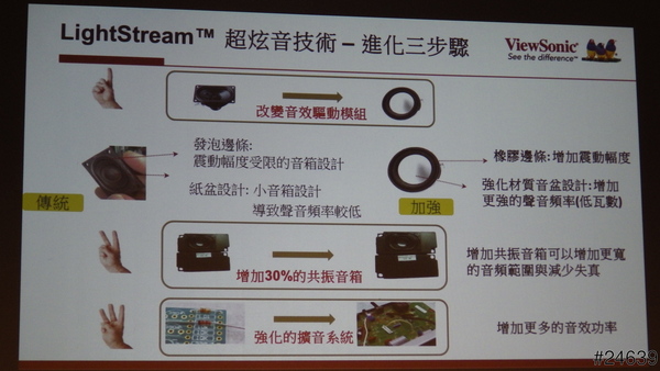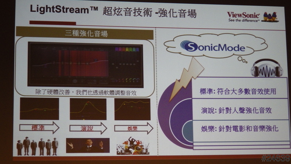 這次ViewSonic推出的光艦系列投影機,在聲音的部份~~推出了只需要2瓦的輸出,可以讓你"聲"歷其境,讓影音合為一體~~