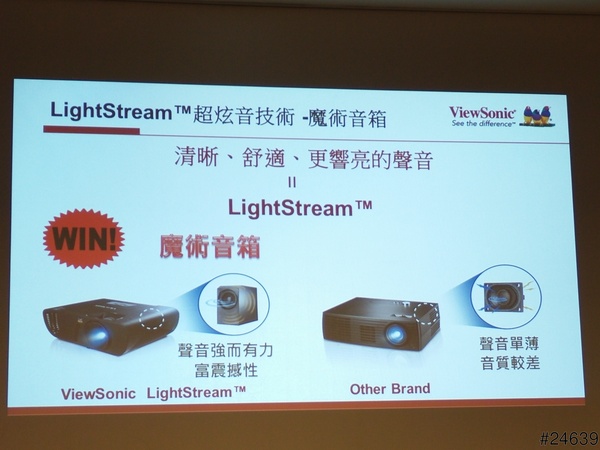 而今日,ViewSonic將投影機的技術更往上提升..推出了LightStream光艦系列投影機。不管是影、音、色都是打造著完美的極品。讓消費者不管是視覺上,聽覺上都有無比的享受~