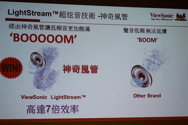 ▼這個就是Viewsonic LightStream光艦投影機的超炫音技術的獨家神奇風管,魔術音箱。