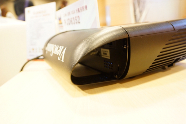 ▼PJD6352 LS具備短焦投影,在一公尺的距離就能投影出80吋的畫面,想必突出的鏡頭就是有如此功效設計。