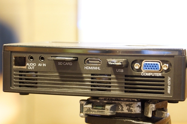 ▼基本的輸出接口都有,有HDMI還有D-SUB,另外還有SD讀卡槽,可以讀取SD記憶卡上的影片,十分方便。