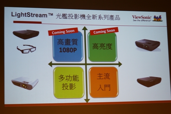 ▼ViewSonic新發表的LightStream光艦投影機,主要區分四大機種,高畫質和高亮度產品即將推出,目前先推出主流入門機種與多功能投影機種。