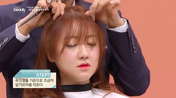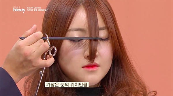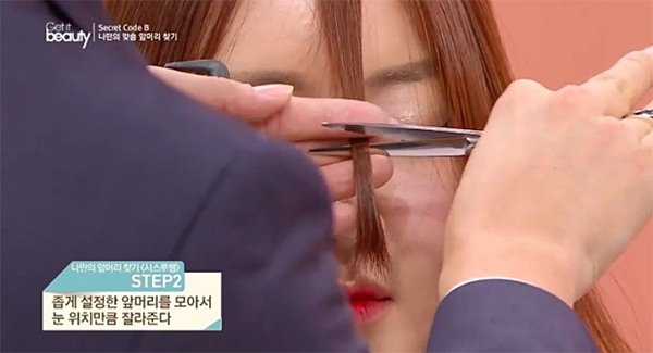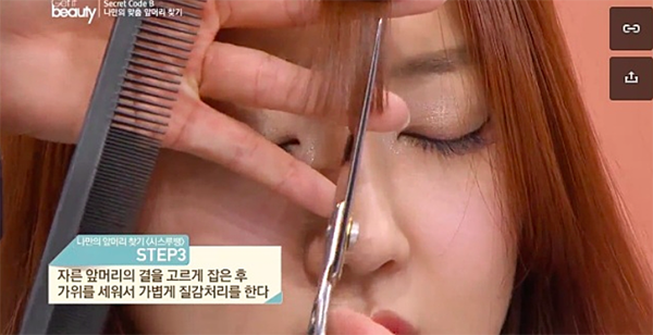 ● 步驟 2:果斷的把頭髮剪短,大概是眼線的位置。